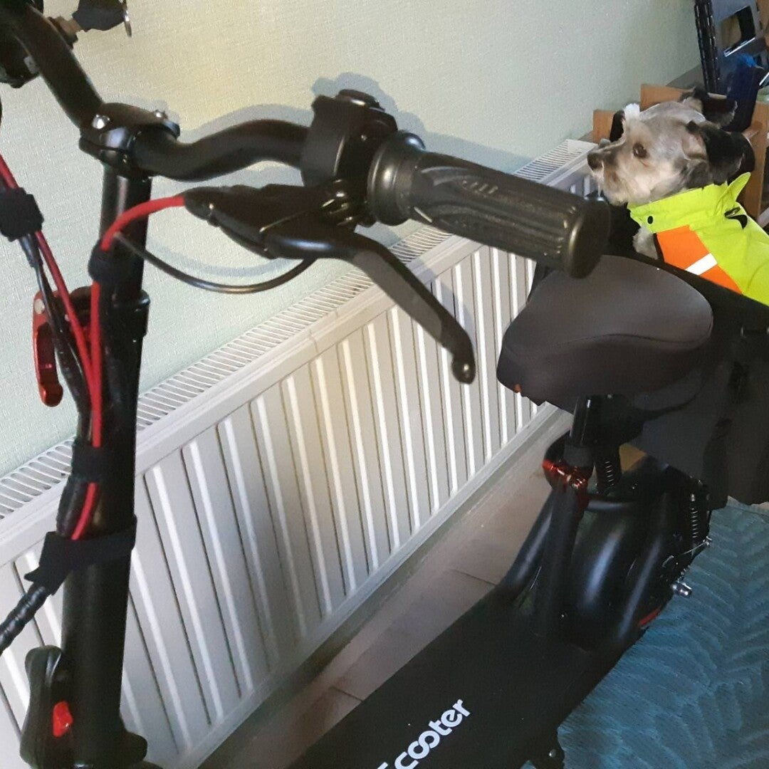 Met de step mag ik natuurlijk in NL niet op de gewone wegen rijden.